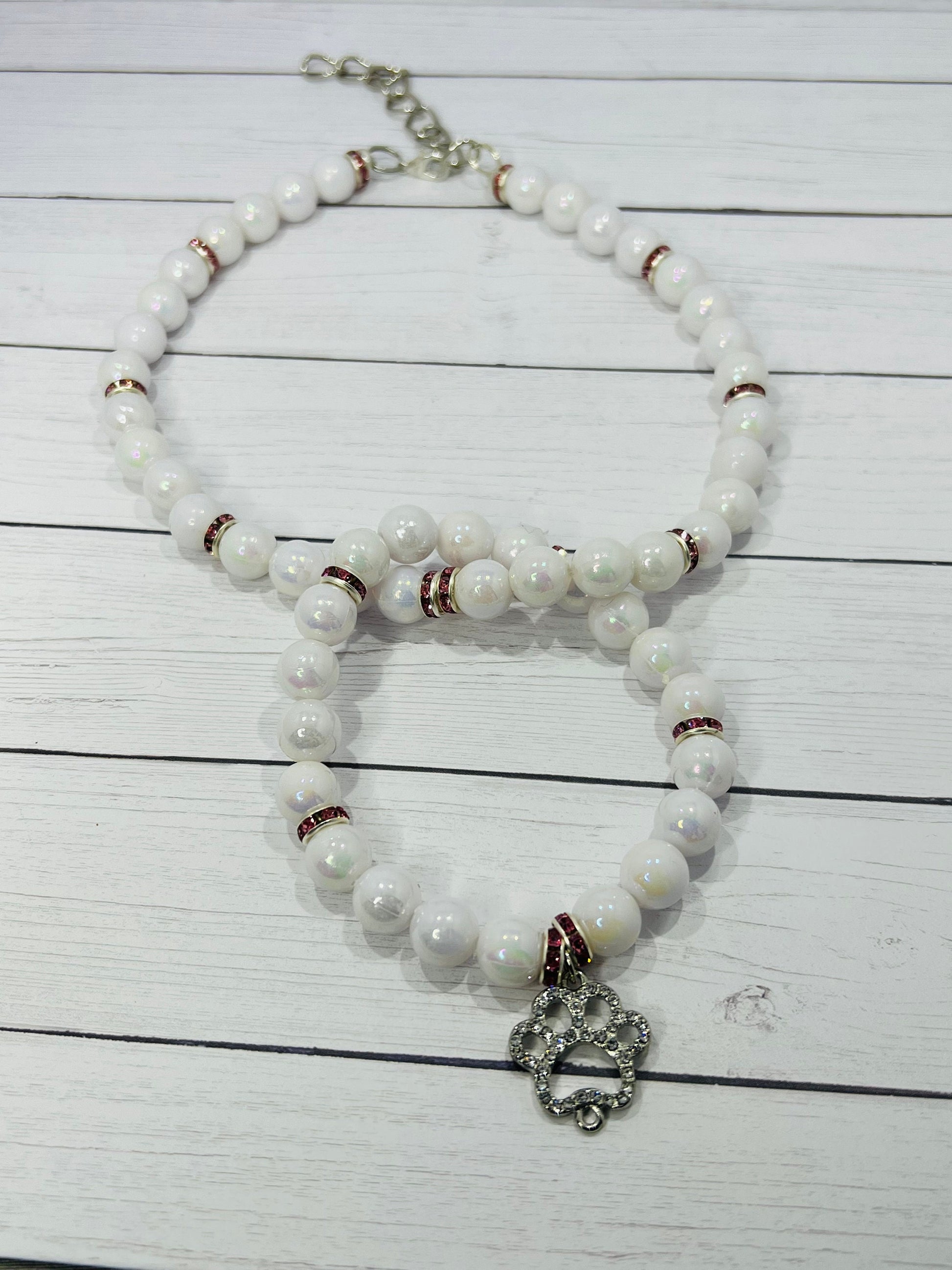 Plastic bead Dog bling necklaces with or without names (for show only- do not attach a leash to it. includes pet owner bracelet with a dog paw on it.